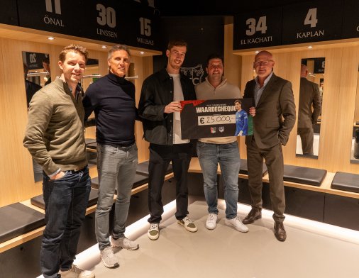 N.E.C., Robin Roefs en SEG overhandigen cheque van € 25.000,- aan V.V. Heeswijk
