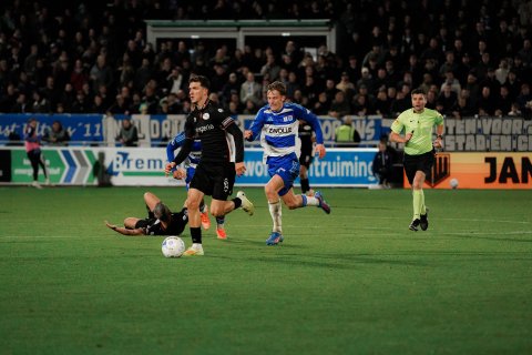Lang hoefden de meegereisde Nijmegenaren niet te juichen. De gasten lieten zich verrassen in de counter: PEC Zwolle trok de stand in de 50e minuut gelijk via spits Koen Kostons. De ploeg van Schreuder leek even later ook niet bij de les, maar mocht doelman Gonzalo Crettaz danken dat hij een geweldige redding in huis had toen Kostons helemaal alleen voor zijn doel verscheen.