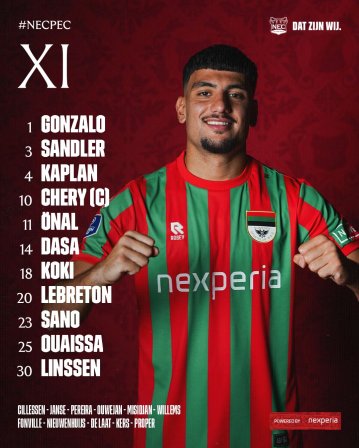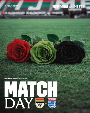 Voorafgaand aan de wedstrijd staan we stil bij alle N.E.C.'ers die ons in 2025 ontvielen. Zorg dus dat je op tijd op je plek zit!