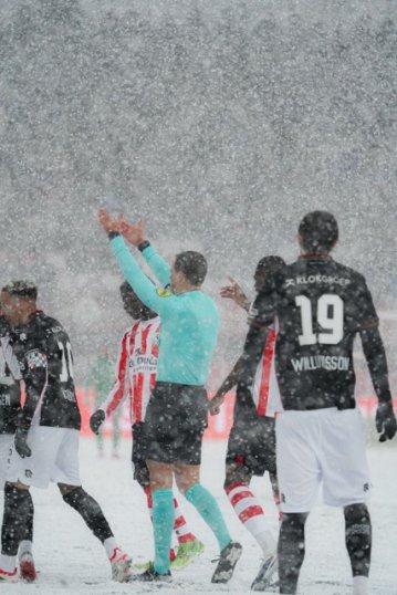 De wedstrijd is door overmatige sneeuwval definitief stilgelegd.