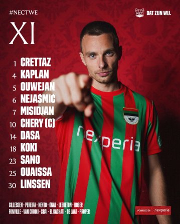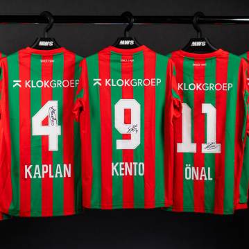De periode van het eerste logo en het bijbehorende balkenshirt in het jubileumseizoen zit erop. De komende thuiswedstrijden speelt N.E.C. in het verticale tenue, uit de jaren '60.